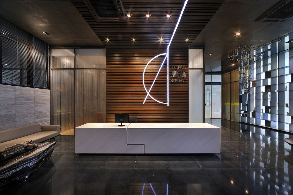 - 接待臺后方可以設(shè)置公司標(biāo)志,以及一些舒適的等候座椅。