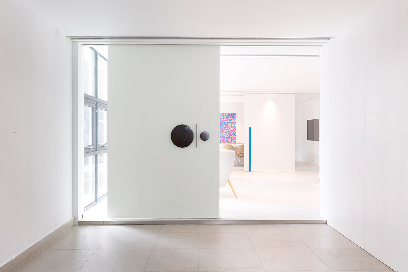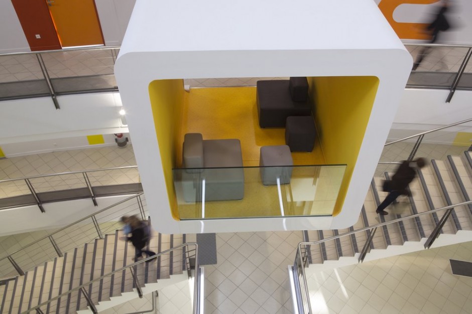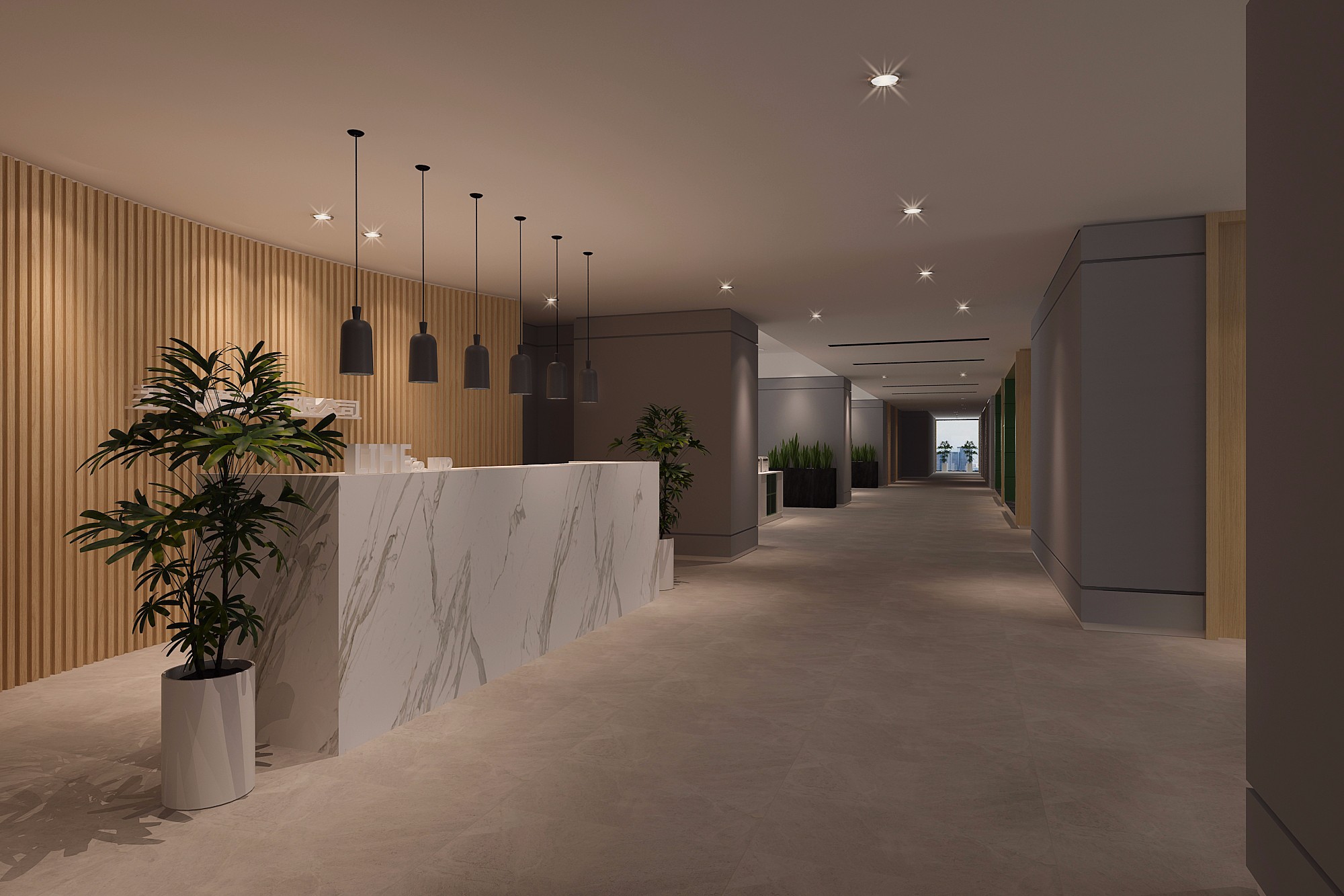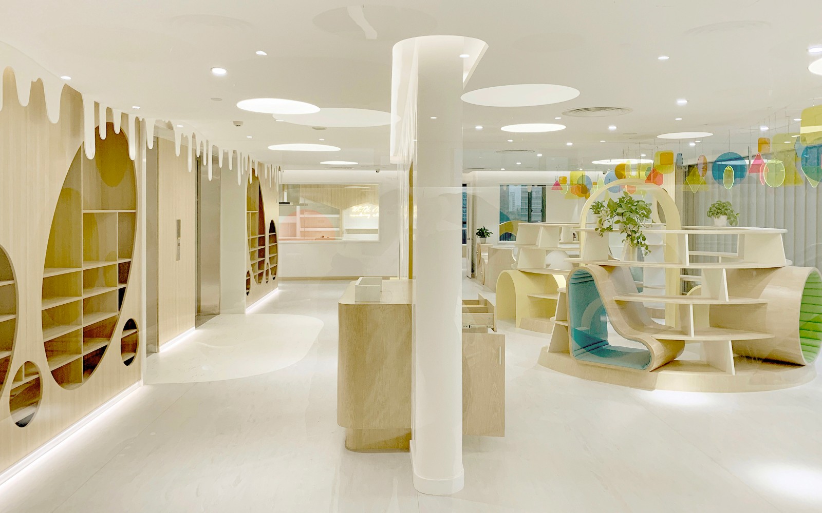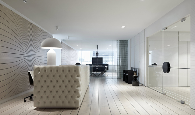 4300平米醫(yī)療公司辦公空間設(shè)計布局,平靜的色彩、柔軟的面料和以類似色調(diào)選擇的彎曲形式提供了所需的寬敞和平靜的氛圍。彎曲的墻壁從入口連續(xù)延伸,增強(qiáng)了空間的連續(xù)性,并通過在墻壁內(nèi)創(chuàng)建的彩色壁龕創(chuàng)建了咖啡店區(qū)域等功能區(qū)域。